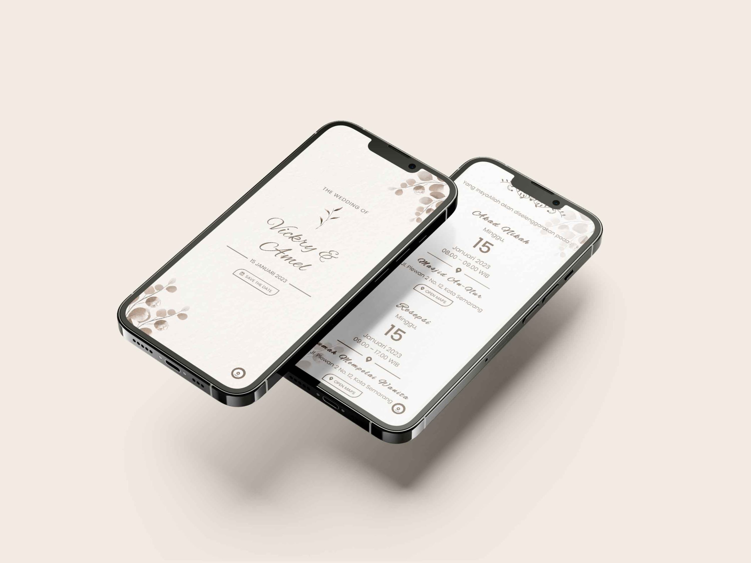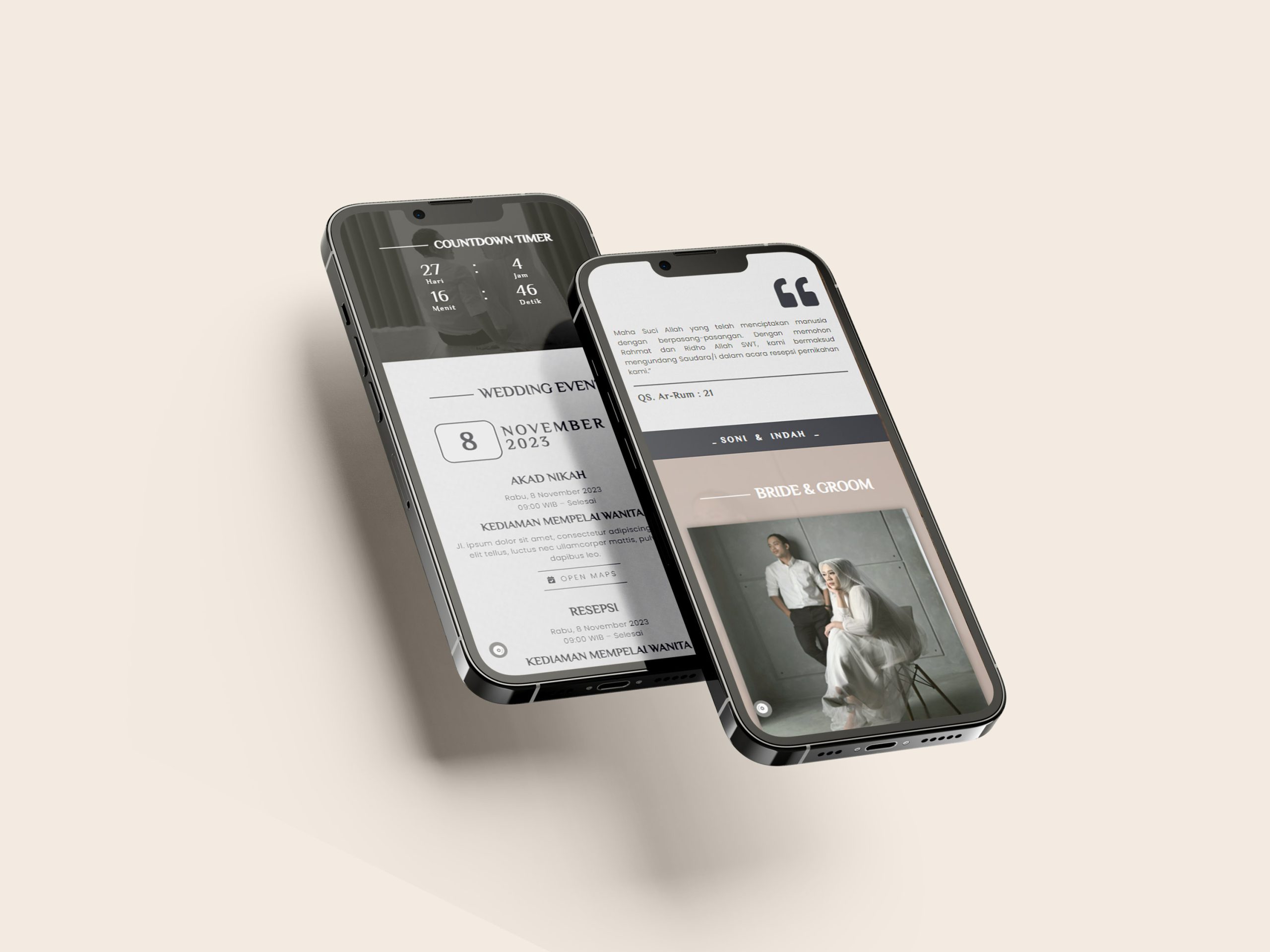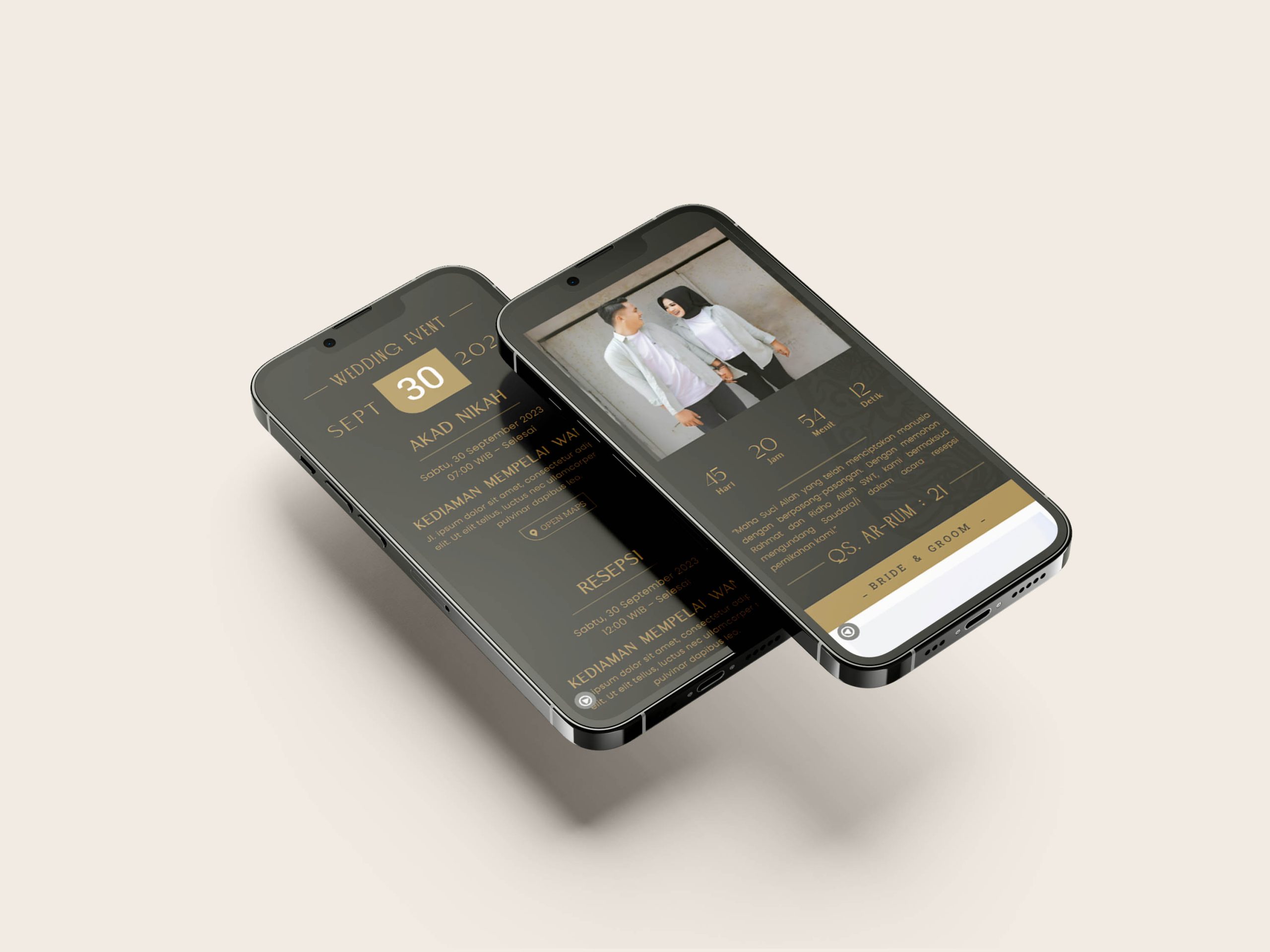 Undangan elegan dan profesional untuk mengekspresikan suasana acara pernikahanmu, dan merupakan cara terbaik untuk berbagi undangan dengan cepat dan simpel di sosial media.