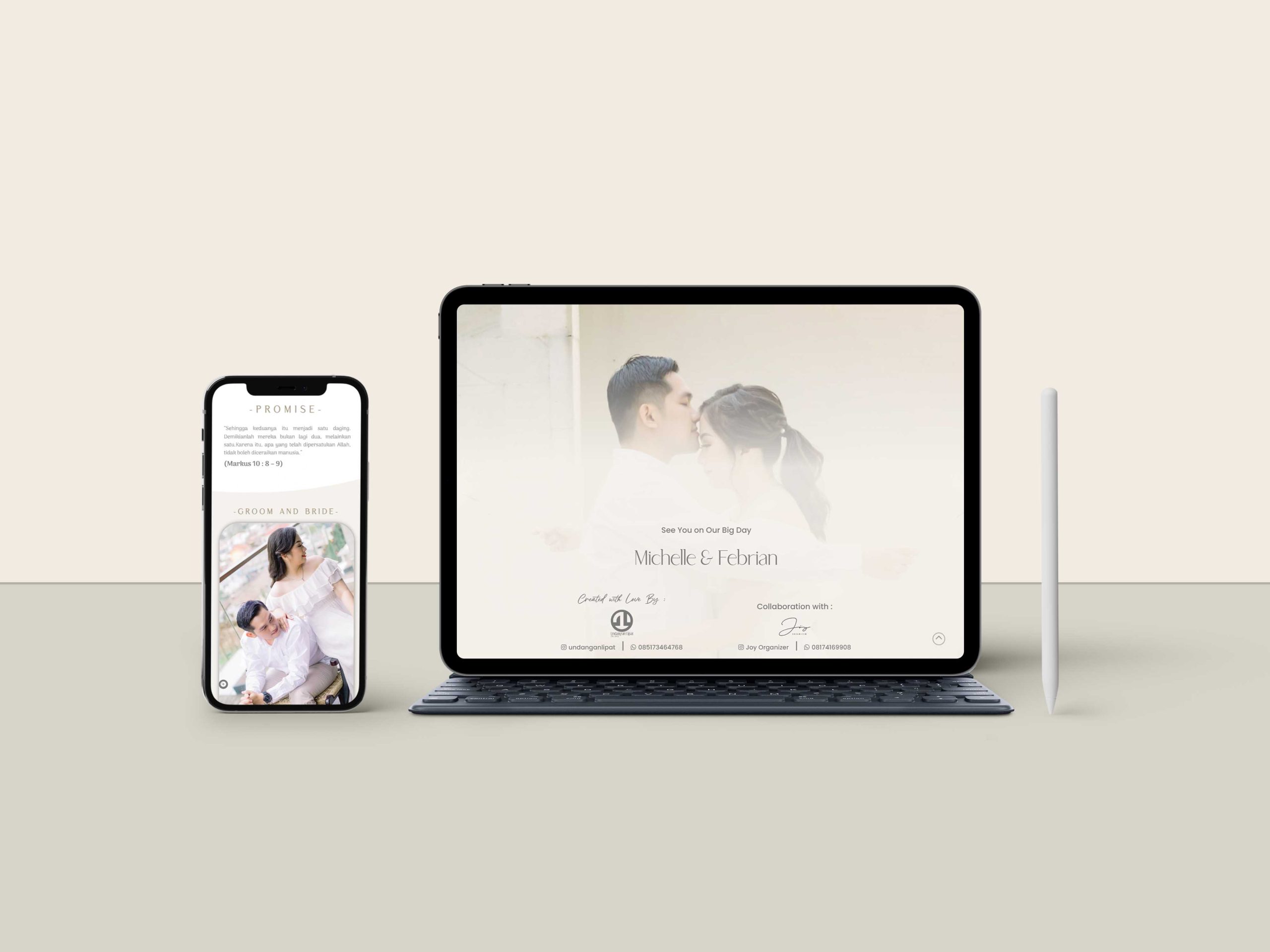 Kami sebagai vendor pembuat undangan pernikahan berbasis website dengan nuansa minimalis dan elegan, akan mempermudah calon mempelai berbagi momen spesial dengan simpel dan mudah.